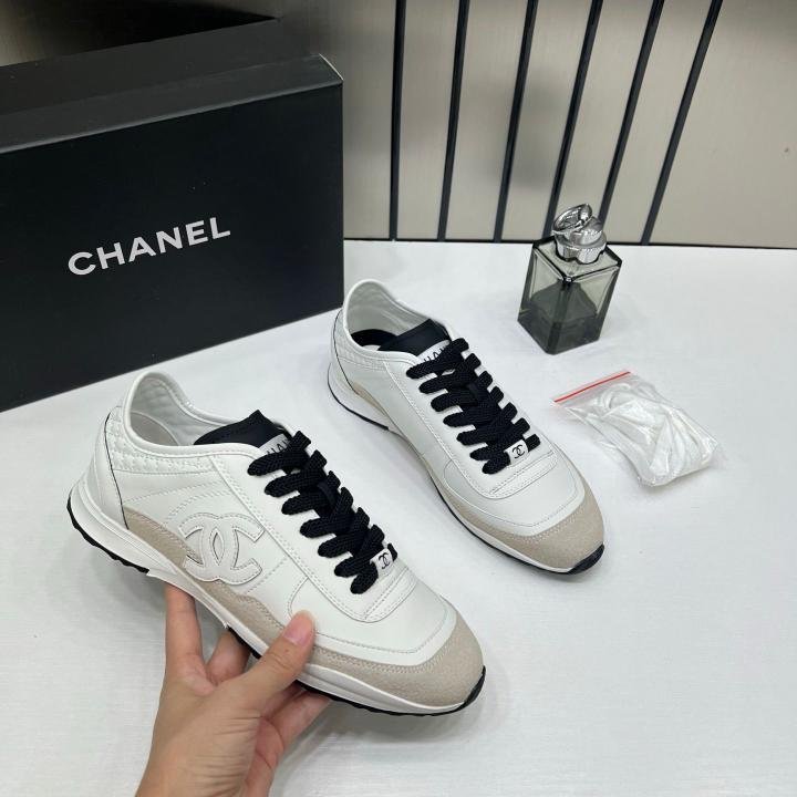 Chaneel white calfskin and suede CC sneakers