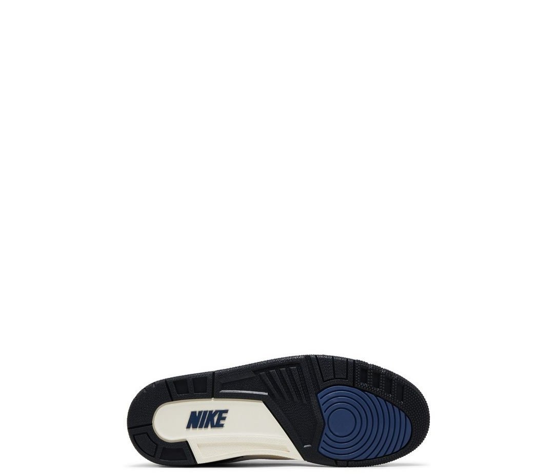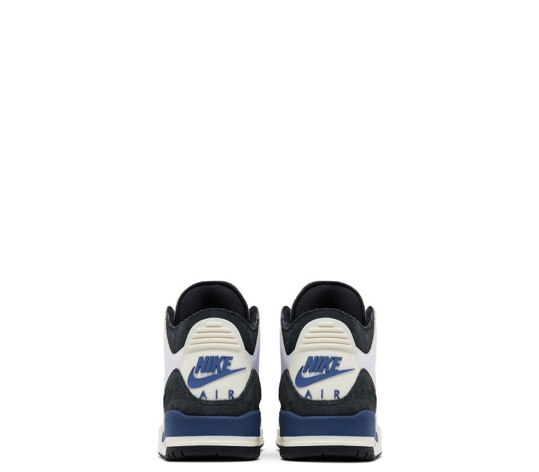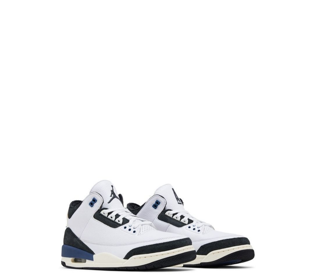 The A Ma Maniére x Air Jordan 3 Retro OG SP ‘For The Love’ features a white tumbled leather upper with anthracite suede overlays at the forefoot and heel. Contrasting blue accents settle on the molded eyelets and the Nike Air logo that decorates the heel tab. An additional splash of blue wraps around the heel of the off-white polyurethane midsole, enhanced with visible Air-sole cushioning. An anthracite rubber outsole yields grippy traction underfoot.