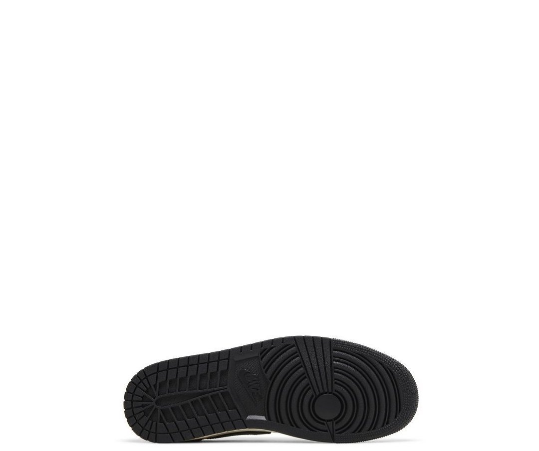 The Air Jordan 1 Retro Low OG ‘Mocha’ features a white leather upper with contrasting black accents on the forefoot overlay and Swoosh. Brown nubuck wraps the heel overlay and back tab, marked with a Wings logo in black. Nike Air branding embellishes the woven tongue tag and sockliner. A subtle off-white finish coats the midsole, fitted with encapsulated Air-sole cushioning and supported by a black rubber outsole.