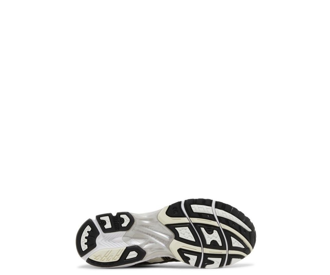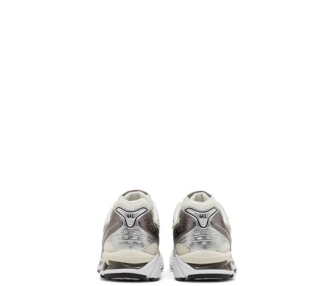 The ASICS Gel Kayano 14 ‘Silver Cream’ features a distinctive color scheme and build that distills a 2000s running-shoe aesthetic. Polished black side stripes decorate an off-white mesh upper, fortified with durable synthetic overlays in a gleaming metallic silver finish. The lifestyle runner rides on a lightweight EVA midsole with visible Gel cushioning in the forefoot and heel. Underfoot, the rubber outsole is fitted with ASICS Trusstic System, good for midfoot support and stability.