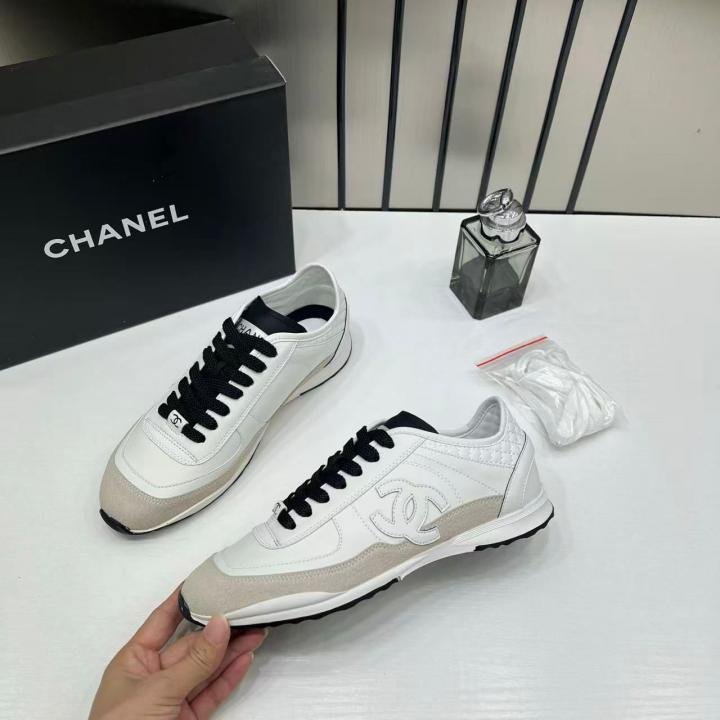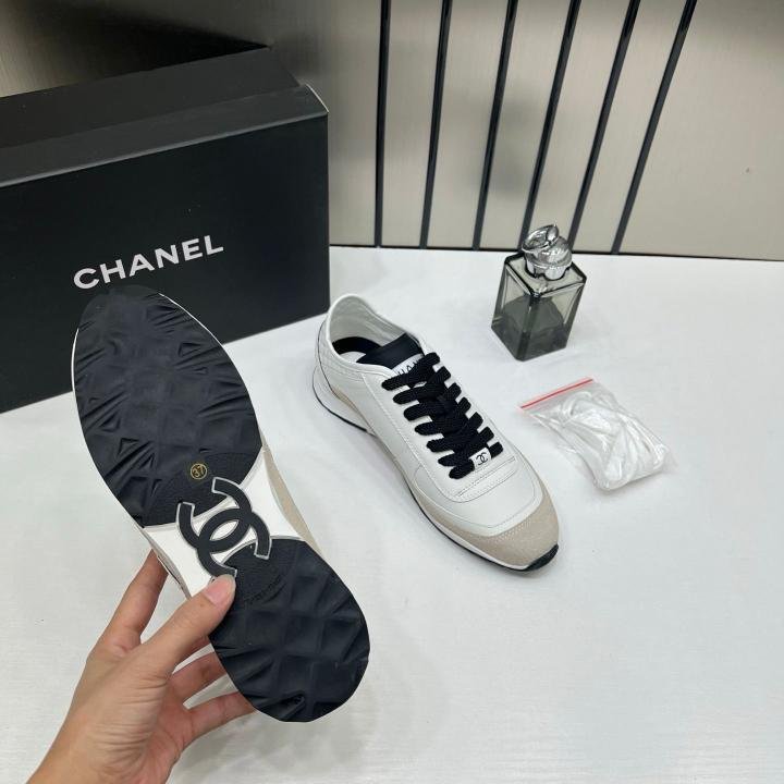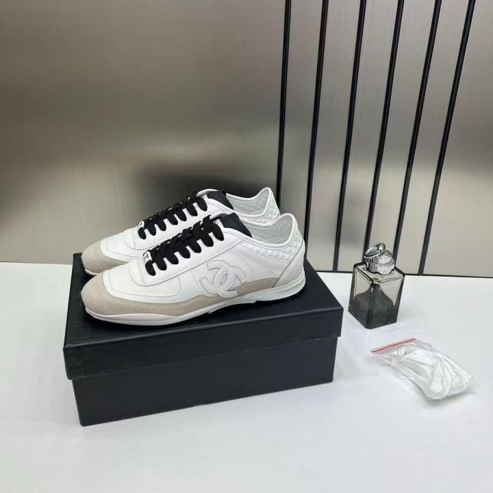 Chaneel white calfskin and suede CC sneakers