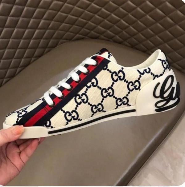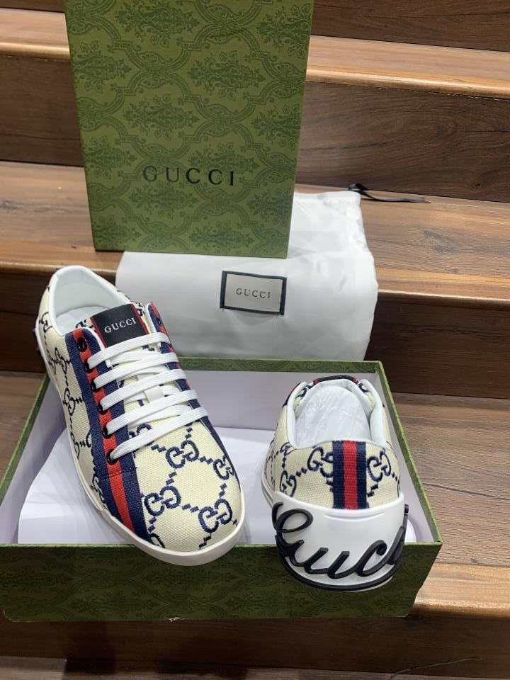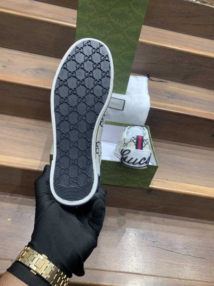 GUCCI VINTAGE EMBROIDERED GG LOGO CREAM PREMIUM SNEAKER TOP BATCH UA