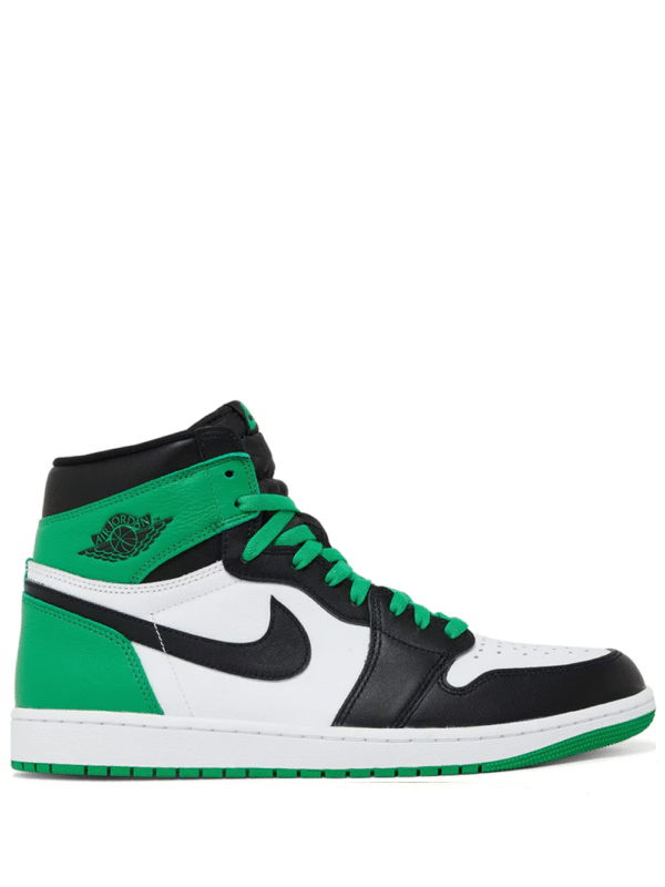 The Air Jordan 1 Retro High OG ‘Lucky Green’ dresses the iconic silhouette in familiar color blocking that mirrors one-half of the 2009 Air Jordan 1 ‘Defining Moments Pack,’ inspired by Michael Jordan’s 63-point playoff performance against the Boston Celtics in 1986. The high-top sports a smooth leather upper, featuring a white base with contrasting hits of black on the forefoot overlay, Swoosh, and padded collar. Lush green accents land on the heel overlay and ankle flap, marked with a retro Wings logo on the lateral side. The shoe earns its OG designation with a woven Nike tag atop the breathable nylon tongue.