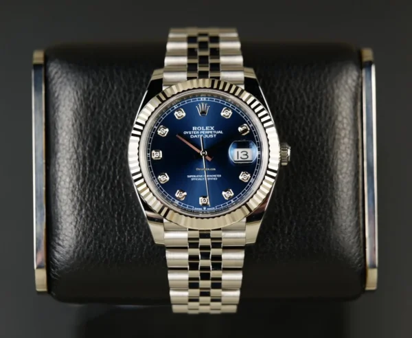 Rolex Date just 41 bright blue, diamond-set