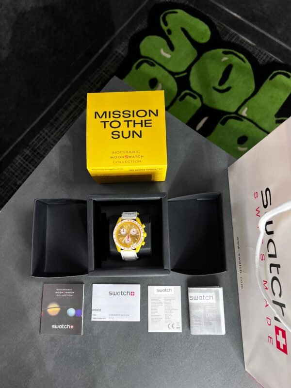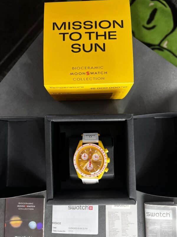 Swatch X Omega Bioceramic Moonswatch Mission To The Moon Sun With Kit