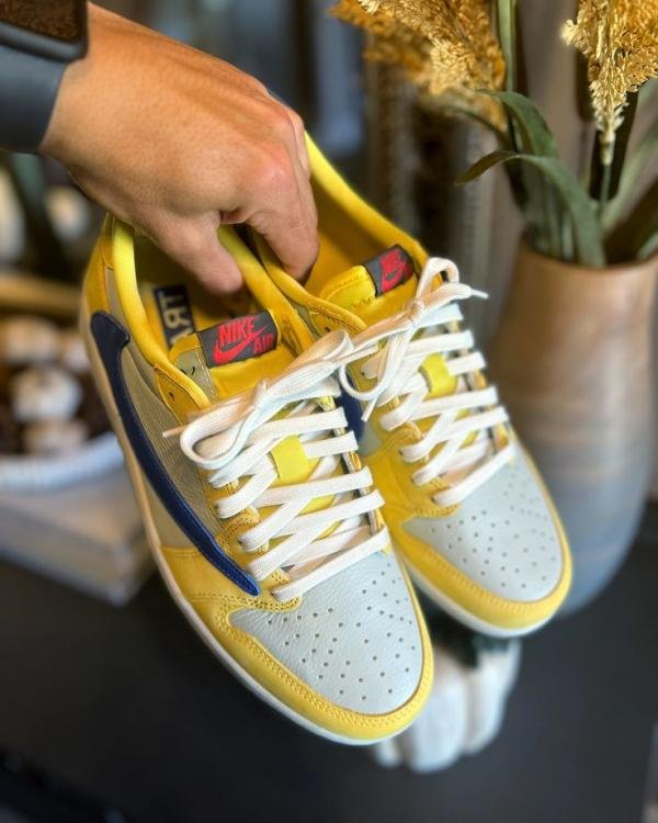 Travis Scott x Air Jordan 1 Retro Low OG SP Canary sneaker. TOP BATCH UA