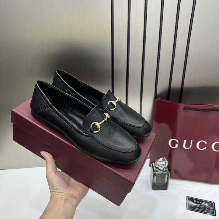 WMNS GUCCCI horsebit Leather Black Loafer TOP BATCH UA